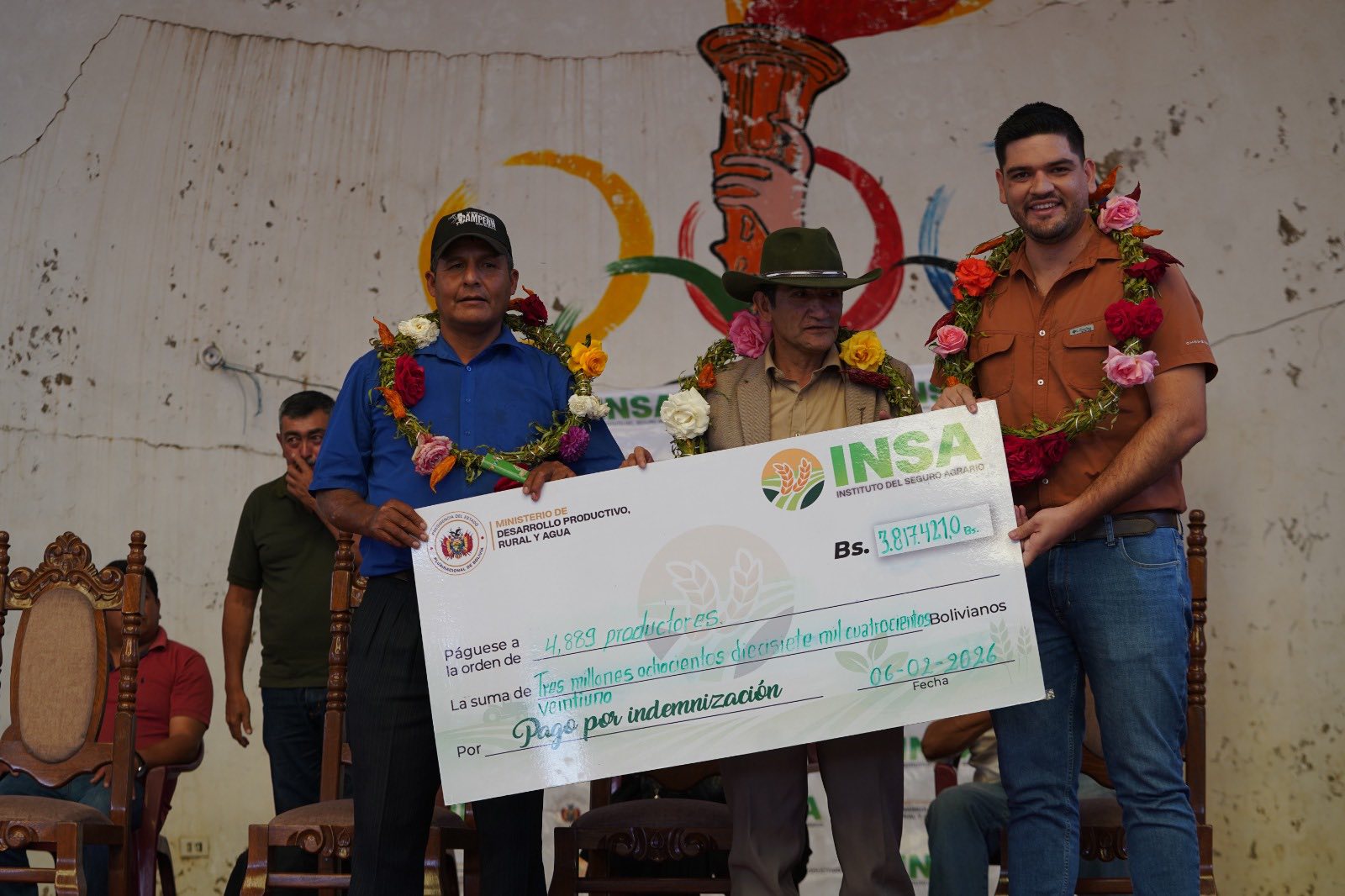 El Ministerio de Desarrollo Productivo, Rural y Agua, a través del Instituto Nacional del Seguro Agrario (INSA), realizó el pago de indemnizaciones del Seguro Agrario Minka, correspondiente a la campaña agrícola 2024–2025, en beneficio de 4.889 familias productoras del departamento de Chuquisaca, afectadas por eventos climáticos adversos.